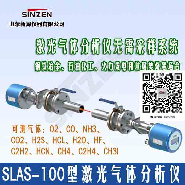 SLAS-100系列激光氣體分析儀是山東新澤儀器有限公司針對國內外工業在線分析、環保在線監測研制的系列化隔爆型可調諧激光氣體分析儀,該系列分析儀提供現場原位探頭式、旁路式、多通道、盤裝式等多種模式,可以在各種復雜工況下在線分析包括O2、CO、NH3、CO2、CH4、H2O、HCl、HF在內的多種氣體(注:單個分析儀只能分析1~2個組分),被測氣體濃度涵蓋常量到微量。