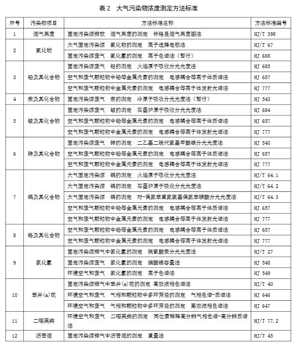 5.1.5對大氣污染物排放濃度的測定采用表2所列的方法標(biāo)準(zhǔn)。本標(biāo)準(zhǔn)發(fā)布實施后,有新發(fā)布的國家環(huán)境監(jiān)測分析方法標(biāo)準(zhǔn),其方法適用范圍相同的,也適用于本排放標(biāo)準(zhǔn)對應(yīng)污染物的測定。