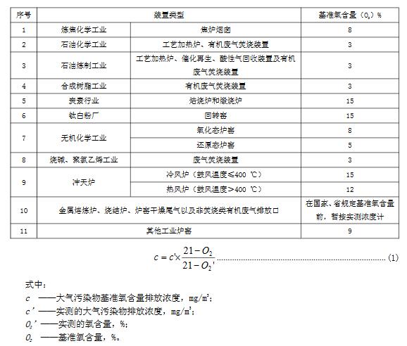 5.2大氣污染物基準(zhǔn)氧含量排放濃度折算方法實測的大氣污染物排放濃度,應(yīng)按表3和公式(1)折算為基準(zhǔn)氧含量排放濃度。國家和山東省規(guī)定了行業(yè)單位產(chǎn)品基準(zhǔn)排氣量的,按單位產(chǎn)品基準(zhǔn)排氣量進行折算。