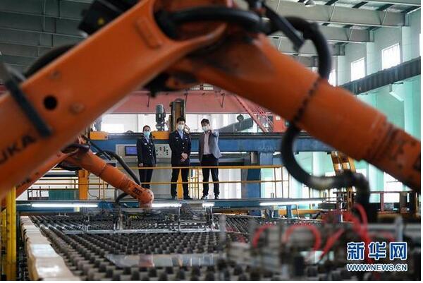 4月23日,河北省沙河市環(huán)境保護(hù)局執(zhí)法人員在河北鑫利玻璃有限公司內(nèi)向企業(yè)負(fù)責(zé)人了解企業(yè)生產(chǎn)情況。2019年起,有“中國(guó)玻璃城”美譽(yù)的河北沙河市啟動(dòng)了“煙羽消白”工程,先后投入20億元對(duì)在產(chǎn)玻璃生產(chǎn)線實(shí)施超低排放改造,并結(jié)合提升廠區(qū)環(huán)境、優(yōu)化產(chǎn)能等措施,削減粉塵、二氧化硫、氮氧化物等污染物排放,推進(jìn)大氣污染治理。 新華社記者 牟宇 攝