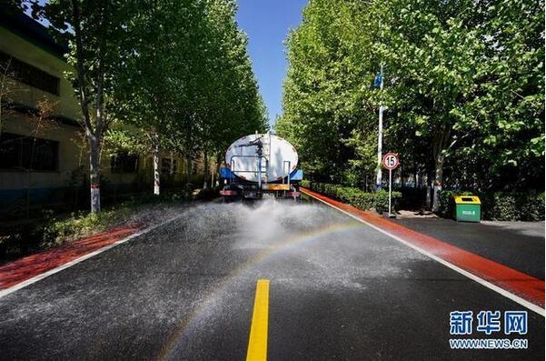 4月23日,灑水車(chē)在位于河北省沙河市的河北鑫利玻璃有限公司廠區(qū)內(nèi)灑水防塵。 2019年起,有“中國(guó)玻璃城”美譽(yù)的河北沙河市啟動(dòng)了“煙羽消白”工程,先后投入20億元對(duì)在產(chǎn)玻璃生產(chǎn)線實(shí)施超低排放改造,并結(jié)合提升廠區(qū)環(huán)境、優(yōu)化產(chǎn)能等措施,削減粉塵、二氧化硫、氮氧化物等污染物排放,推進(jìn)大氣污染治理。新華社記者 牟宇 攝
