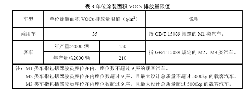 4.2.3單位涂裝面積VOCs排放量 單位涂裝面積VOCs排放量限值應符合表3規定。