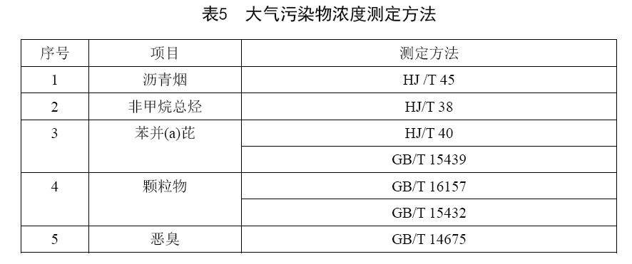 本標準大氣污染物濃度測定方法按表5執行。