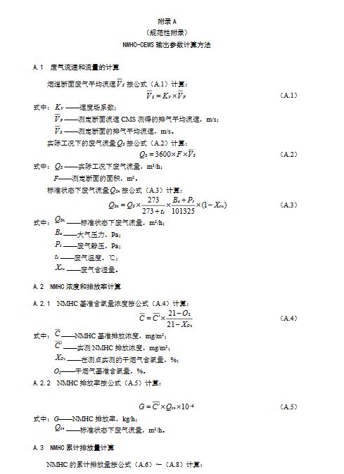 對(duì)于含氧量參與污染物折算濃度計(jì)算的,應(yīng)按本標(biāo)準(zhǔn)附錄A中公式(A.4)換算為大氣污染物基準(zhǔn)排放濃度。