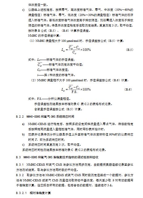9.3.2.1非甲烷總烴技術(shù)指標(biāo)要求見(jiàn)本標(biāo)準(zhǔn)表1,操作步驟和計(jì)算公式按照HJ1013中7.2現(xiàn)場(chǎng)檢測(cè)要求和方法及本標(biāo)準(zhǔn)附錄B相關(guān)要求執(zhí)行。準(zhǔn)確度驗(yàn)收時(shí),待測(cè)NMHC-CEMS與參比方法同步對(duì)現(xiàn)場(chǎng)排放非甲烷總烴進(jìn)行測(cè)量。參比方法可選用HJ38,也可選用國(guó)家制訂發(fā)布的其它非甲烷總烴測(cè)試方法標(biāo)準(zhǔn)。