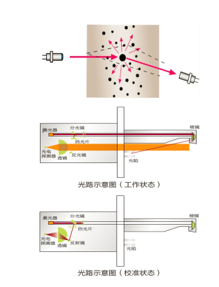 Sdust-100型煙塵濃度監測儀采用激光后向散射測試原理完成對被測煙道的煙塵濃度的測定。Sdust-100其內嵌的高穩定激光信號源穿越煙道,照射煙塵粒子,被照射的煙塵粒子將反射激光信號,反射的信號強度與煙塵濃度成正變化。Sdust-100檢測煙塵反射的微弱激光信號,通過特定的算法即可計算出煙道煙塵的濃度。