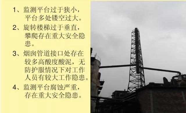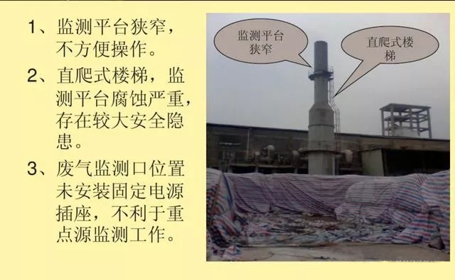 如:排氣筒的高度不夠;未設置監測等采樣孔、采樣平臺,以及排放標志牌的,詳見《上海市大氣污染物綜合排放標準》(DB31/933-2015)。
