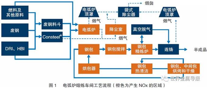 對(duì)于電弧爐熔煉車(chē)間,凡是帶有電弧或燒嘴的工藝或設(shè)備都應(yīng)被視為NOx的排放源,但正如本文后面將看到的,實(shí)際并不僅限于此。