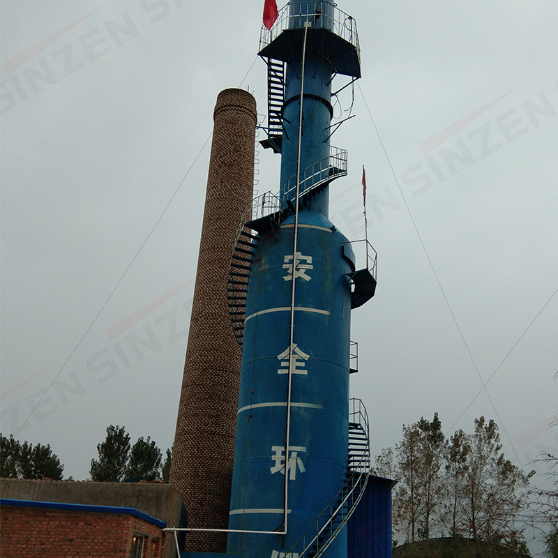 脫硫塔主要由筒體,噴霧裝置、篩板、脫水除霧裝置、溢水孔、清理孔等組成,其工作原理是:含煙塵及硫氧化物的煙氣流通過進(jìn)口煙道進(jìn)入筒體,含有[OH-]離子的堿性水分別從脫硫塔上中下部由螺旋噴嘴噴出,形成與煙氣成逆向的多排高速霧化水幕,增加了煙塵硫氧化物與水的碰撞概率,并充分利用霧化液滴的速度來造成很高的氣液相對速度,以保證除塵和脫硫效果。同時氣體經(jīng)過篩板時對篩板上的液層產(chǎn)生鼓泡作用,增加了氣液傳質(zhì)的表面積和湍動狀態(tài),提高了傳質(zhì)速率,二氧化硫與堿液發(fā)生氣液交換,進(jìn)一步提高了脫硫效果。脫硫生成物隨水流到脫硫塔底部,從溢水孔排走,在筒體底部封底并設(shè)有水封槽以防止煙氣從底部泄漏,備有清理孔便于進(jìn)行筒體底部清理。脫硫后廢水由底部溢流孔排出進(jìn)入沉淀池,沉淀中和再生,循環(huán)使用。凈化后的氣體,通過筒體上部經(jīng)除霧后引出,從而達(dá)到除塵脫硫目的。