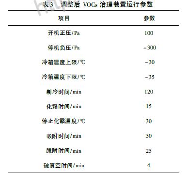 經過實踐的摸索,初始設定的運行參數對于VOCs 治理裝置的達標排放是不恰當的,具體地: