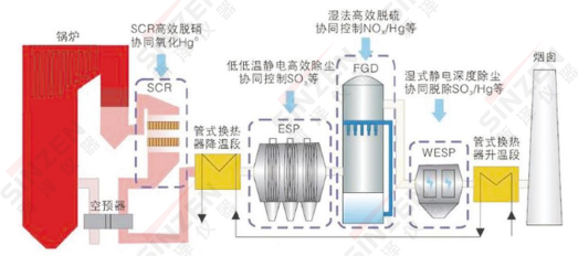 各個行業按照最新的排放標準,對于市場上現有的CEMS煙氣在線監測系統,很難滿足其監測需求,尤其隨著FGD、SCR等技術的發展,排放的監測數值也必將向著更低濃度的檢測發展。目前主流的超低改造工藝流程圖如下: